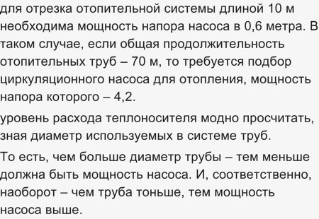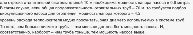 Совет: на практике разумным будет выбор циркуляционного насоса для отопления с запасом по напору не меньше 10%. Всех потерь все равно не учесть.