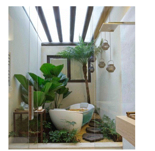 Взять для ванны стоит пальмочку, но только карликовую, мох прекрасно впишется.