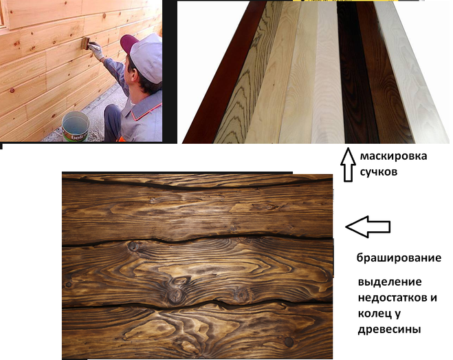 Сравните на рисунке ниже браширование евровагонки с сучками и маскировку, намного эффективнее выглядит браширование.