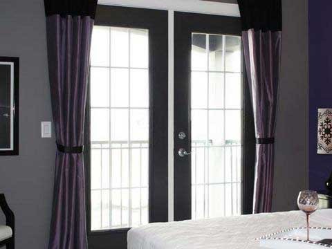 При большой площади комнаты и особенно, если балконная дверь располагается посредине стены, можно выбрать шторы сложного кроя. Например, уместно будет сделать на шторах различные драпировки, ламбрекен будет отлично смотреться.