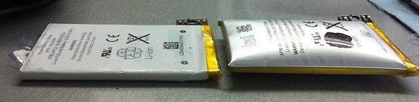 Можно осмотреть батарею устройства и по визуальным признакам определить в каком состоянии батарея.