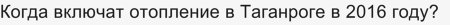 В Таганроге не торопились, там было теплее, чем где либо, поэтому ещё от 3 октября решили подписать бумаги, что стартует сезон только лишь с 15 октября, решили, подписали и так и сделали, но не все сразу 15 числа получили тепло, были и аварийные здания, их подключили позже.