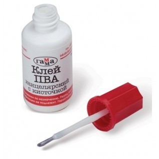 (он более жидкой консистенции, в отличии от ПВА строительного) с кисточкой, что так же удобно.
