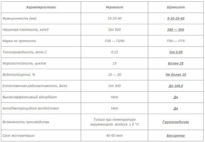 Если материалу предстоит работать во влажных условиях, берите шунгизит, но помните, керамзит прочней, то есть учитывать надо всё и сразу.
