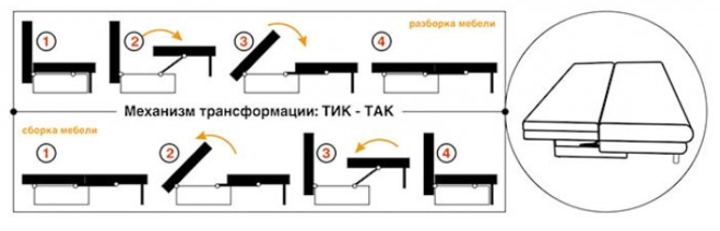Из многих типов раскладки диванов, могу на собственном опыте сказать что механизм трансформации называемый "Тик-так" ходит на много дольше остальных. При чем ущерба для ковров и линолеума ни какого, потому что в отличии от "еврокнижки" выдвижная часть не выезжает на колесиках, а приподнимается и ставится на стойки.