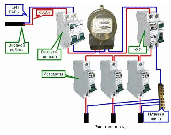 Ставится сразу же после счетчика перед автоматическими выключателями контролирующими каждую из линий (розетки одной комнаты, освещение и т.п.) В итоге получается что все электроточки в доме контролируются одним УЗО. Можно конечно и на каждую комнату поставить свое УЗО, но это лишняя и не практичная мера, хотя и помогающая точнее "диагностировать" место утечки тока.