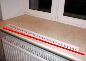 Тут есть вариант установки вентиляционной решётки в подоконник.