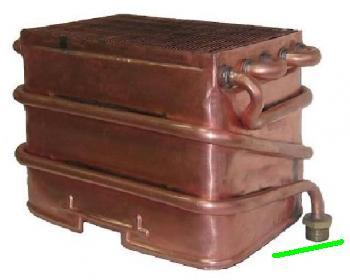 Вот теплообменник газовой колонки "Нева" в наличии фитинг (штуцер) "папа" с резьбой на конце.