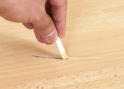 Проблемные места (царапины, потертости) можно отреставрировать подобранной по цвету специальной пастой для ремонта ламинированных покрытий.