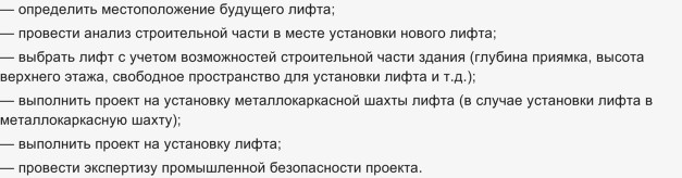 Многие компании представляют широкий выбор и установку лифтов. Установка занимает несколько дней, сам лифт занимает немного места и требует минимального обслуживания. Предлагаются различные модели кабин и виды шахт.