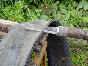 Слишком толстые участки протектора если не получается резать ножом, то пропиливайте ножовкой по металлу.