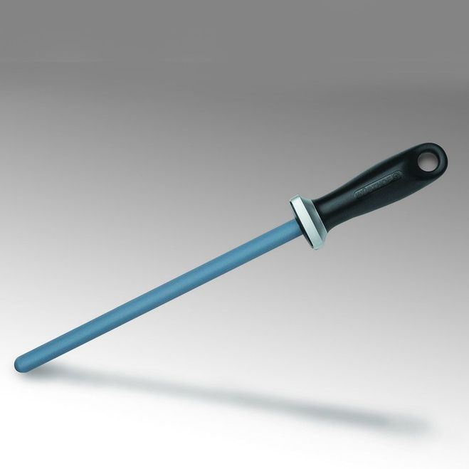Для этого же зачастую, в набор вкладывается такое приспособление, как мусат (некоторые называют его точилкой. кстати, правильный мусат имеет круглую форму, без насечек и служит исключительно для правки)