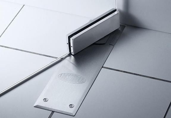 Что касается доводчиков, то они могут быть разной конфигурации. Очень часто применяются напольные утапливаемые. Для таких доводчиков понадобится предварительное штробление пола, для того, чтобы утопить туда устройство с механизмом доводчика.