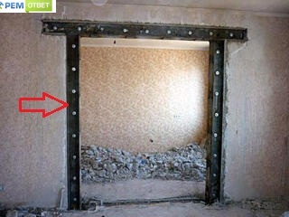 Чтобы сделать проем нужно получать разрешение, технические условия, проект, после изготовления проема он усиливается например швеллером, или уголками (стальными) вот фото