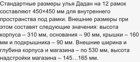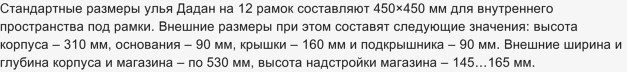 У меня были улья даданы однокорпусные, на один ряд рамок, но сейчас пчеловоды используют улья, в которых нижний ряд рамок для расплода, верхний ряд рамок (магазин) поменьше размером для меда.