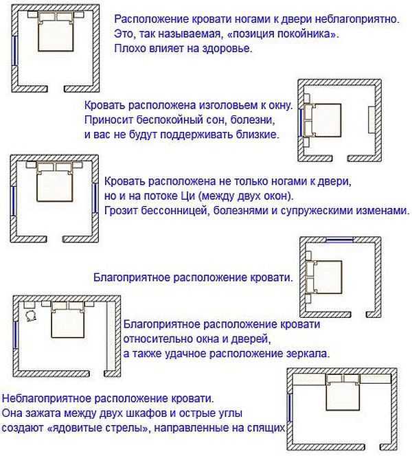 2 - нельзя ставить кровать изголовьем к стене, в которой есть дверь.