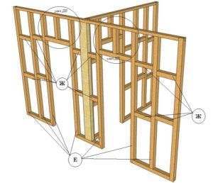 То есть возводится каркас из бруса, далее уже, или гипсокартон, или ОСП, или фанера, или вагонка, причём с двух сторон, средний слой утеплитель, к примеру минеральная вата, это ещё и звукоизоляция не плохая.
