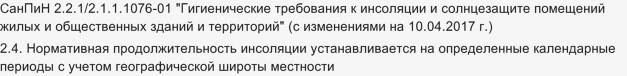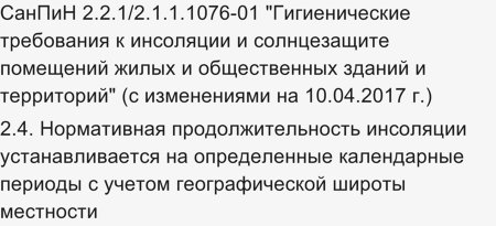 Конечно же нормы инсоляции существуют, правда старый СанПин уже не действует, новый документ регламентирующий и инсоляцию (освещенность) в том числе, СанПиН 1.2.3685-21.