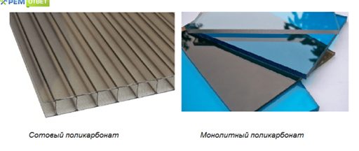 Поликарбонат может быть сотовым, или монолитным, вот фото