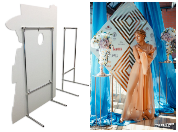 В качестве готовой идеи каркаса для фотозоны можно использовать и заводские стойки для банеров -