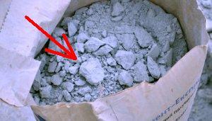 (это случается даже со свежим цементом), то хранился он не правильно, цемент набрал влагу и использовать его уже никуда нельзя, даже как "балласт".