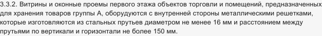Если речь о неких промышленных объектах, то расстояние между прутьями не должно быть более 15 см.