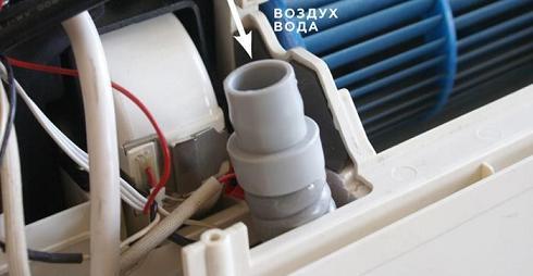При работе кондиционера на радиаторе блока (внутреннего) образуется конденсат, то есть вода.