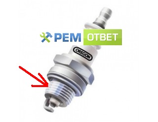 Как видите та самая "юбка" у свечи для бензопилы короче, чем резьбовая часть свечи зажигания для автомобиля.
