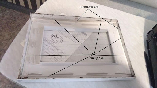 Чтобы снять стекло надо по периметру двери отогнуть защёлки, они тоже пластиковые.