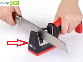 механические точилки (прорезиненные) подходят для заточки и зазубренных ножей.