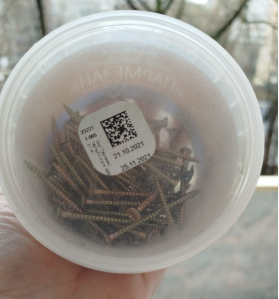 У нас на балконе стоит старый деревянный шкаф, точнее основание от старинного буфета. И там муж хранит инструменты некоторые и, в частности, гвозди, шурупы, винты и гайки и т.п.