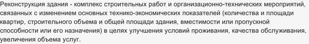 Под словом реконструкция в нашей стране зашифровано много чего. Если начинать с начала(по старшинству), т.е. с кодексов, практически главных законов нашей страны, то из Градостроительного кодекса, согласно статье 1, узнаем, что: