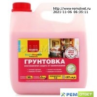 Это акриловая грунтовка, может использоваться и для внутренних работ и для наружных, наносил валиком, но можно и кистью.