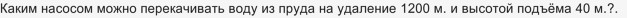 Расстояние просто огромное (более километра) ещё и перепад в 40 метров, "обычные бытовые" насосы с этой задачей не справятся.