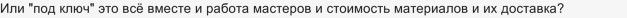 В моем случае один пункт добавляется ("консультация при выборе материалов) и один пункт отсутствует "оплата материалов", все остальные пункты, включая нашу работу (работа мастеров) попадают под это понятие ("под ключ").