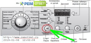 кнопку "старт-пауза", процесс стирки будет остановлен.