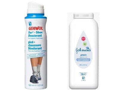 для ног, в составе пудры (пудра выпускается в форме спрея) тоже есть тальк, ноги не потеют и соответственно не скользят в босоножках.
