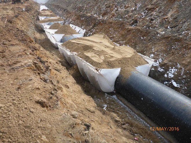 Утяжеляющие грузы используются для того, чтобы предотвратить всплытие газопроводной магистрали или ее смещения от намеченной схемы пути прокладывания, а обетонированные трубы служат защитой газопровода от внешних воздействий, сохраняя целостность стального трубопровода.