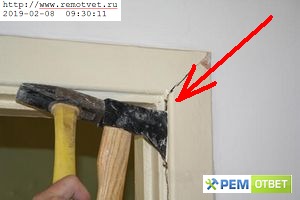 Вставляем топор между наличником и коробкой, чуть подбиваем его и демонтируем наличники.