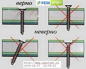 правильного и неправильного закручивая саморезов в ГКЛ.