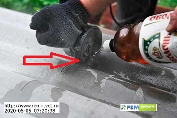 место реза водой, опасна пыль при резке и сверлении шифера.
