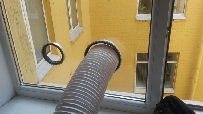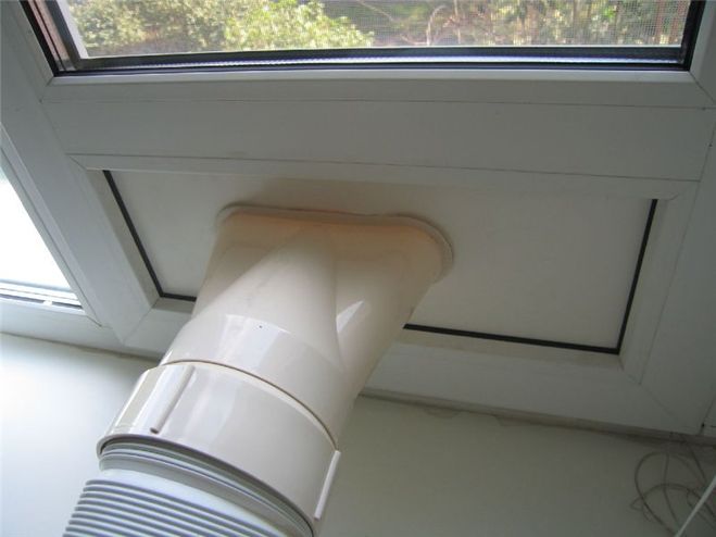 Ещё проще можно было решить проблему установки мобильного кондиционера с окном в котором есть открывающиеся створки.