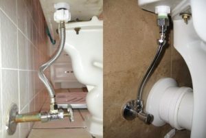 Вода не "падает" с высоты в бачок издавая шум, трубка отводит воду к дну бачка унитаза.