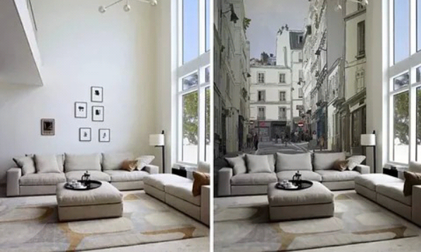 Так же к светлым оттенкам можно добавить реалистичные обои с принтом.