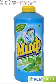 Затем набираем в ёмкость тёплую воду, добавляем любое жидкое моющее для посуды, я использовал вот такое