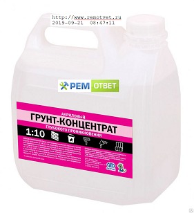 концентрированные грунтовки глубокого проникновения, перед нанесением такие грунтовки разводятся водой (1:5, или 1:10, читайте информацию на таре).