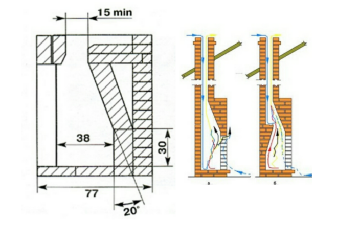 Вообще, технически барбекю отличается от всех прочих печей - голландки, колпаковой и даже русской. Главное отличие - дымоход должен быть оборудован зубом - резким смещением с последующим сужением. Этот элемент не только образует тягу, но и препятствует осыпанию сажи, завихрениям воздуха и обратной тяге. Еще он повышает КПД конструкции, что актуально для эксплуатации в помещении.