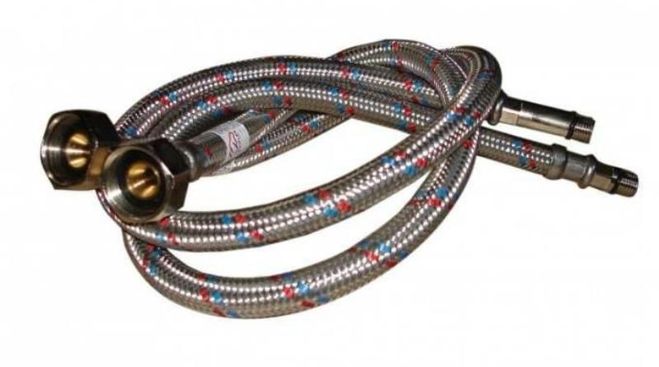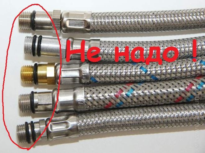 Шланги гибкой подводки воды разные, на конце может быть гайка (то есть выход "мама" и шланг "мама").