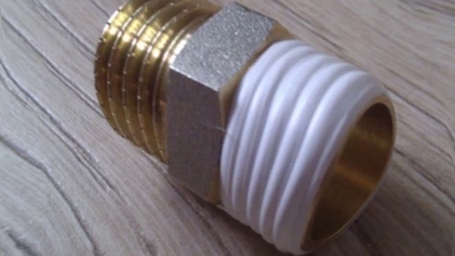 Если же всё же решите использовать фум-ленту (хотя это и не правильно) то подматывается она на трубу, на её наружную резьбу.