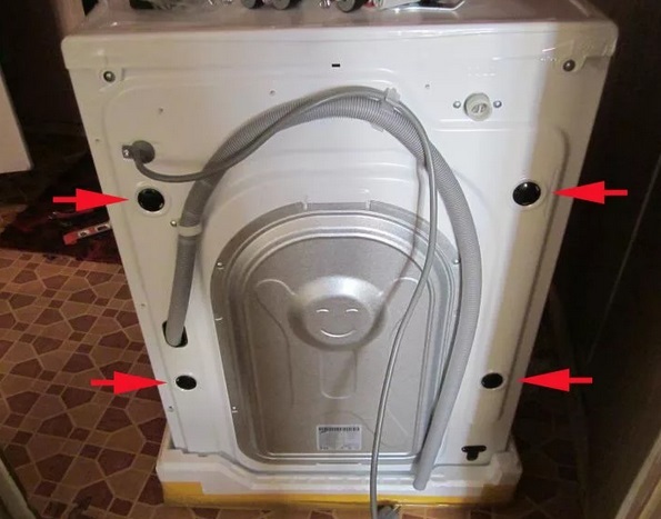 Стоит отметить также то факт, что у различных стиральных машин транспортировочные болты могут находится в разных местах.